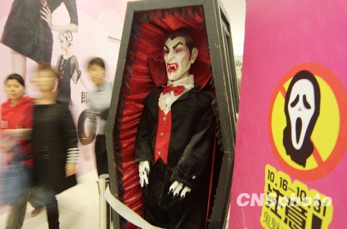 ハロウィーンの訪れを目前にひかえた29日、北京のあるデパートでは吸血鬼や死体、骸骨などの本物そっくりの人形を置いて客寄せにつとめた。人間と同じぐらいの背丈のある本物そっくりの吸血鬼の人形にびっくりしたお客は皆、慌てて避けて通っていた。デパートの従業員によると、ハローウィンの気分を盛り上げるためにこうした人形を設置したという。こうした人形と記念撮影する大胆なお客もいるそうだ。(編集YH)