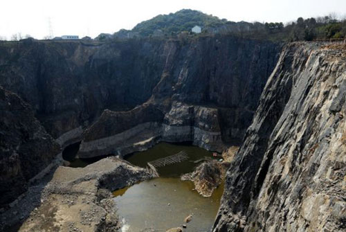 3月12日、上海松江の天馬山縦穴。上海市は100メートル近くの深さがある松江天馬山の縦穴に海抜マイナス65メートルとなる5つ星クラスホテルを建設する計画だ。完成すると、国内初の人工的な縦穴内に建てられた5つ星クラスホテルとなる。