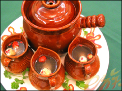 汽鍋とは、鍋の中の蒸気を循環させることによって、中の食材を蒸すという調理法です。これによって、汽鍋の中の食材に含まれるエキスがスープに溶け込んで、食材自身も柔らかくなり、透明で澄んだスープに仕上がります。中国で、4000年以上の歴史を持つ古い調理法です。