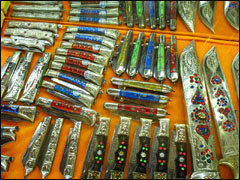 カシュガルのイエンギサール県は、ナイフの名産地と言われています。イエンギサールのナイフは全て手作りで、ナイフの柄にはさまざまな金属製の飾りがついているので、本当にきらびやかです。